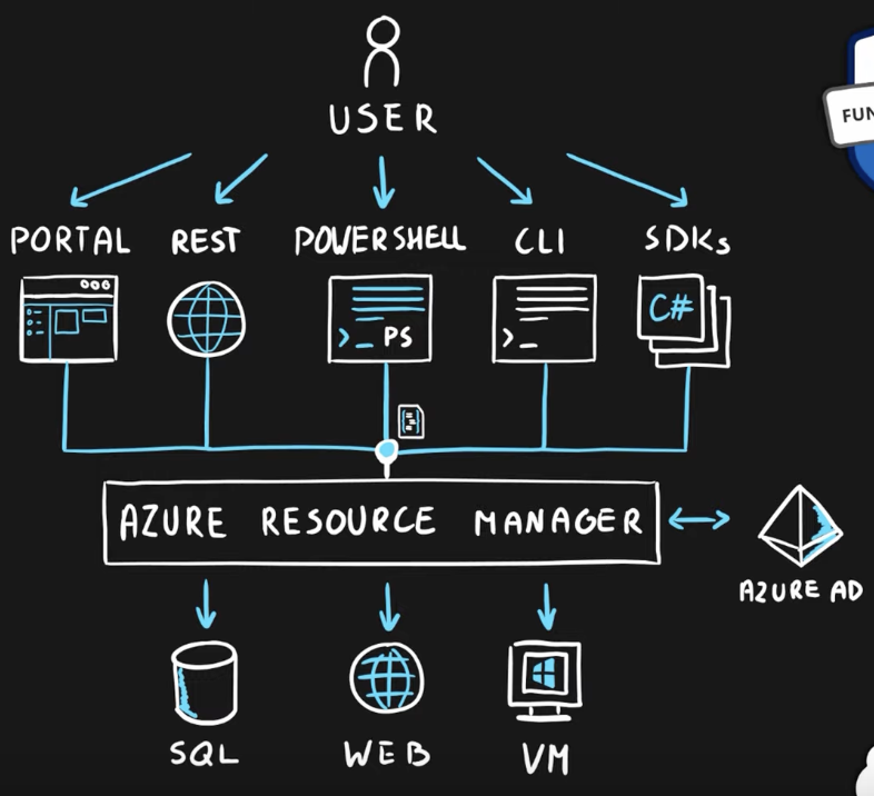 - Verschiedene Interfaces (Portal, RestAPI, Powershell etc.) senden immer die Anfragen an den Resource Manager