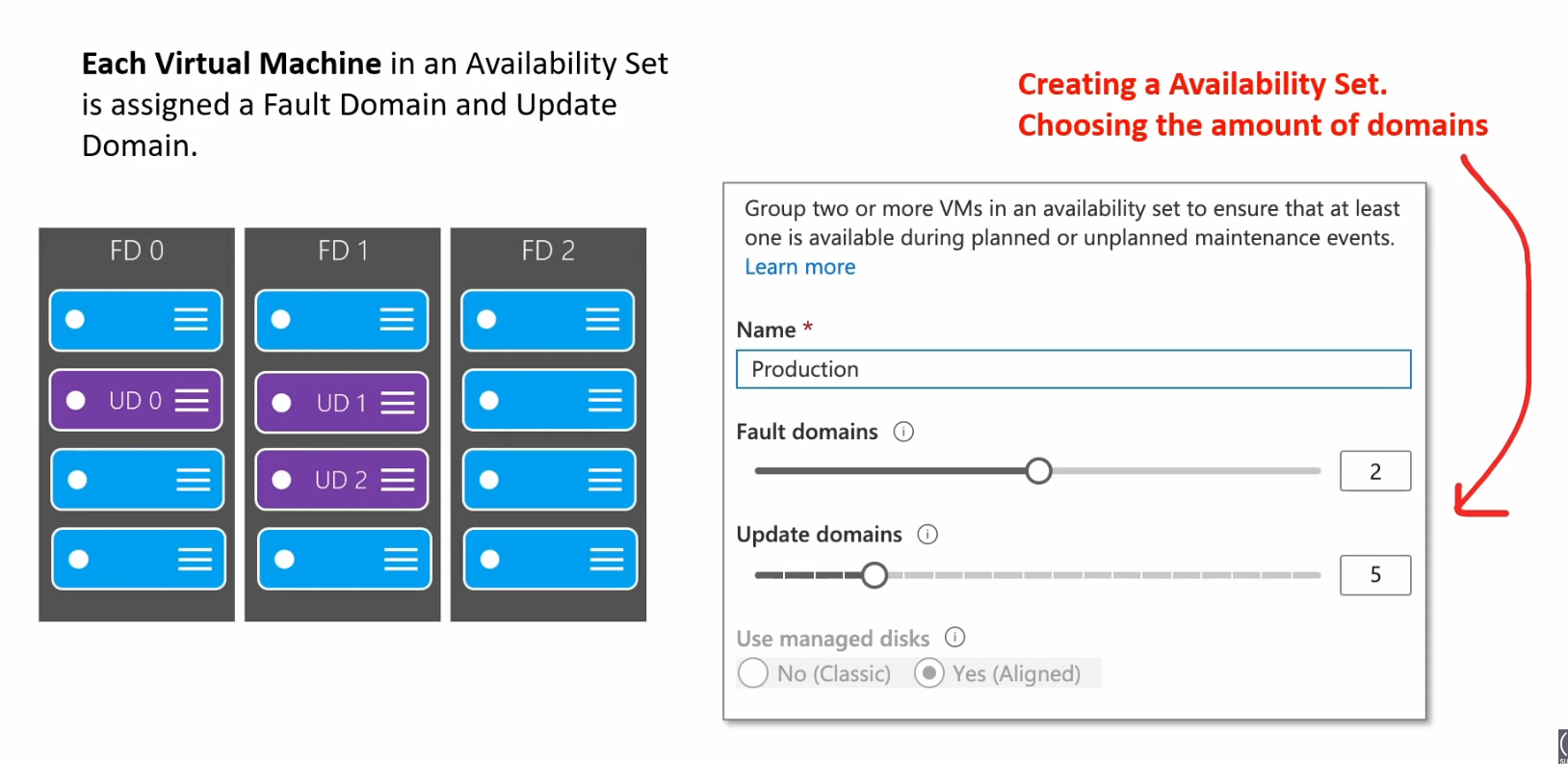 - VM bekommen automatisch eine Updatedomäne zugewiesen sobald sie in einem Availability Set sind.