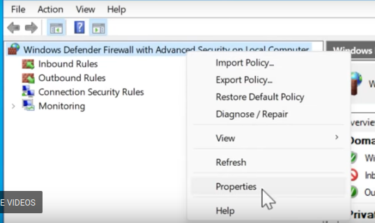 Man kann das Logging der Windows Firewall Profile einstellen, worin dann Pakete die gedroppt werden in einem Log geschrieben sind. Um das Feature einzuschalten, muss die “Windows Defender Firewall mit erweiteter Sicherheit” geöffnet werden. Klicke rechts auf den ersten Eintrag im Baum mit dem Namen “Windows Defender Firewall mit erweiteter Sicerheit auf Lokaler Computer”.