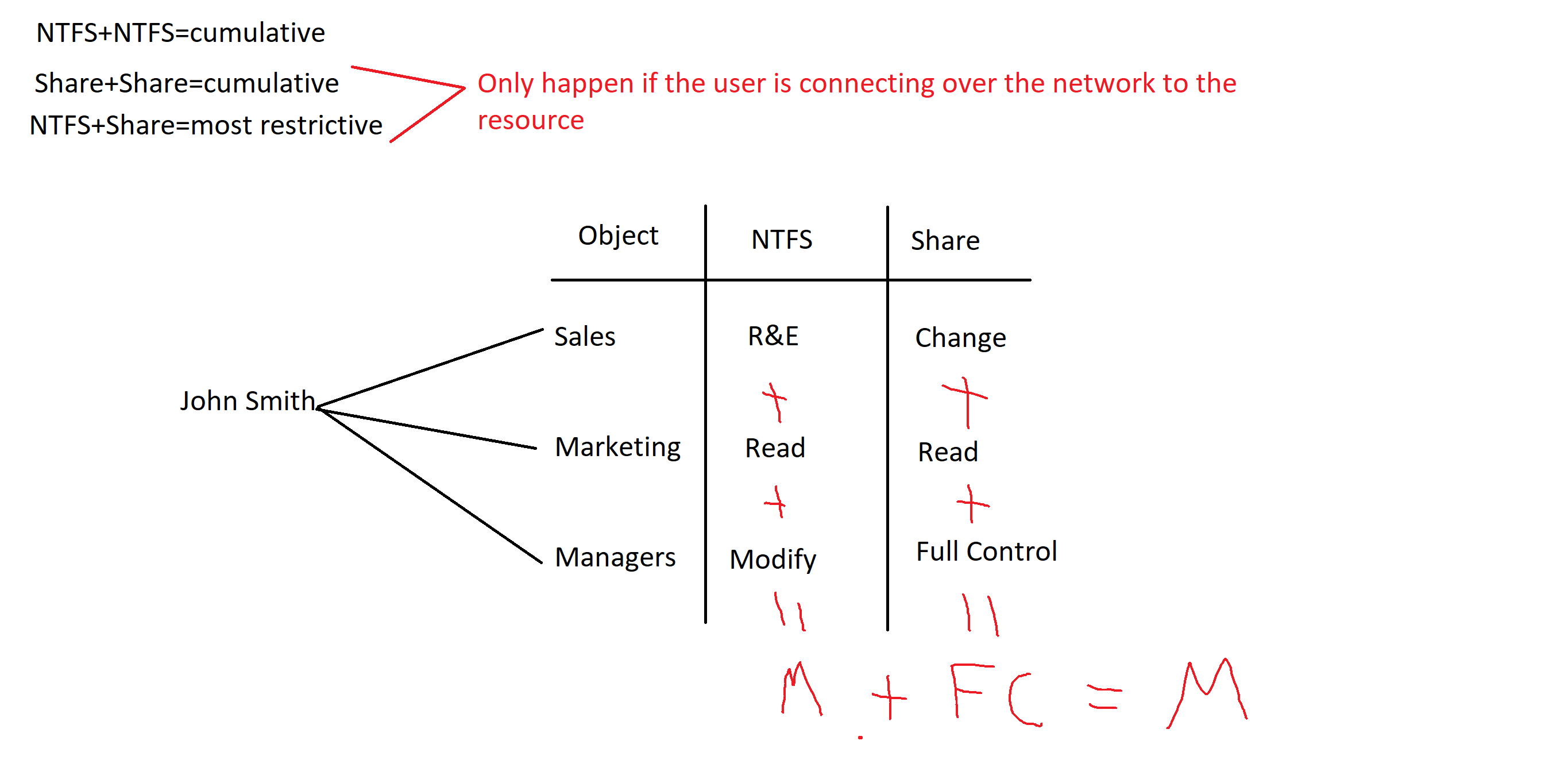 - Berechtigungen sind wie bei den NTFS Berechtigungen kummulativ