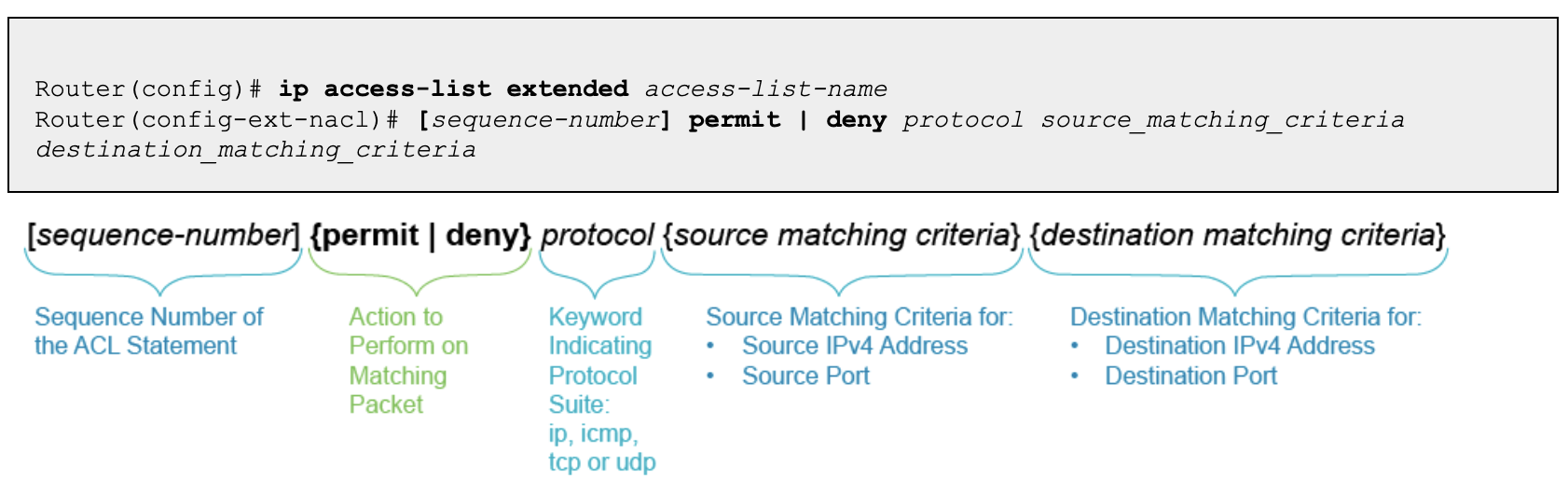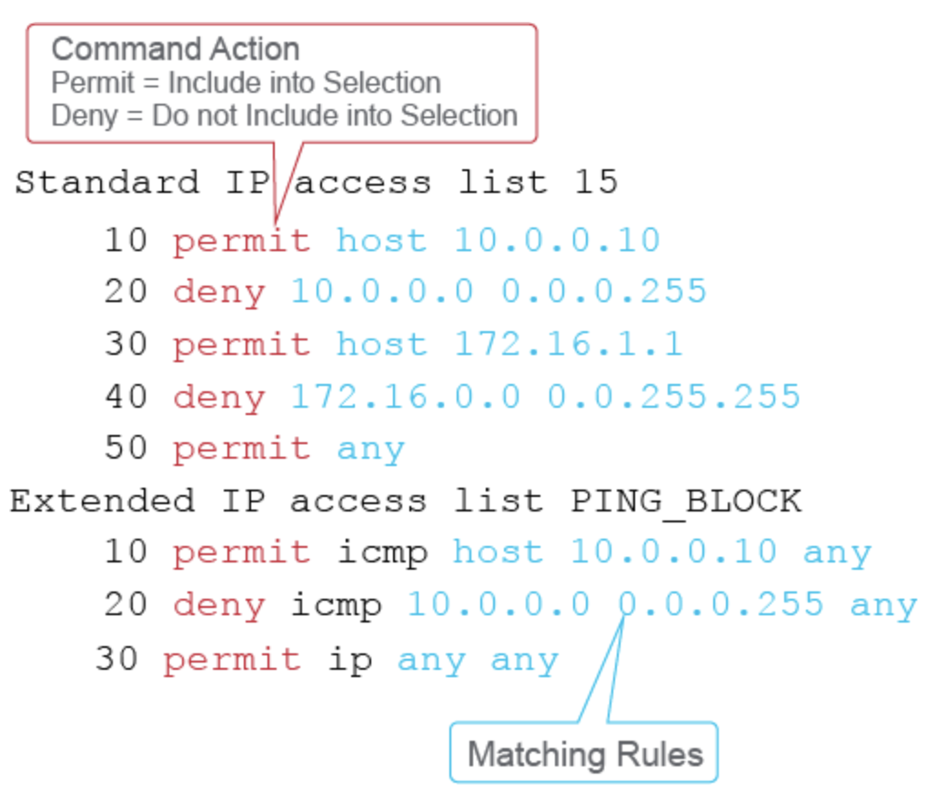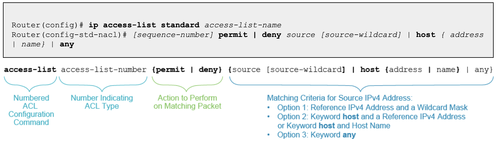 - `ip access-list standard