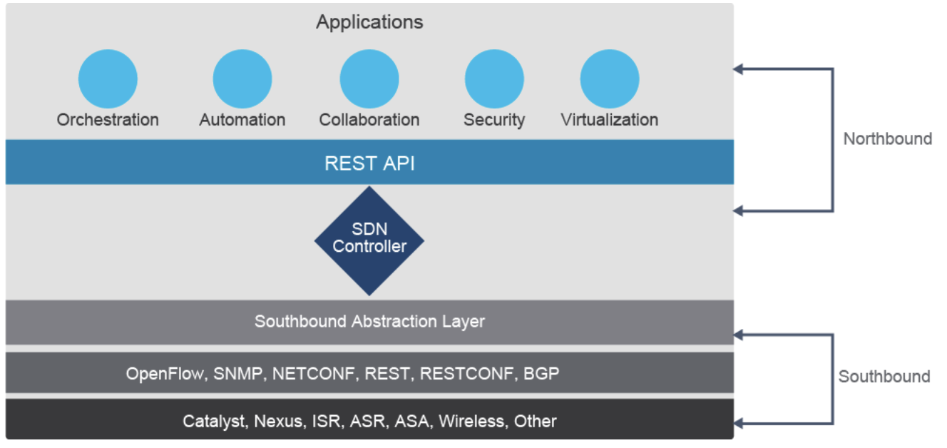- Im SDN wird die Control Plane von der Hardware gelöst und abstrahiert