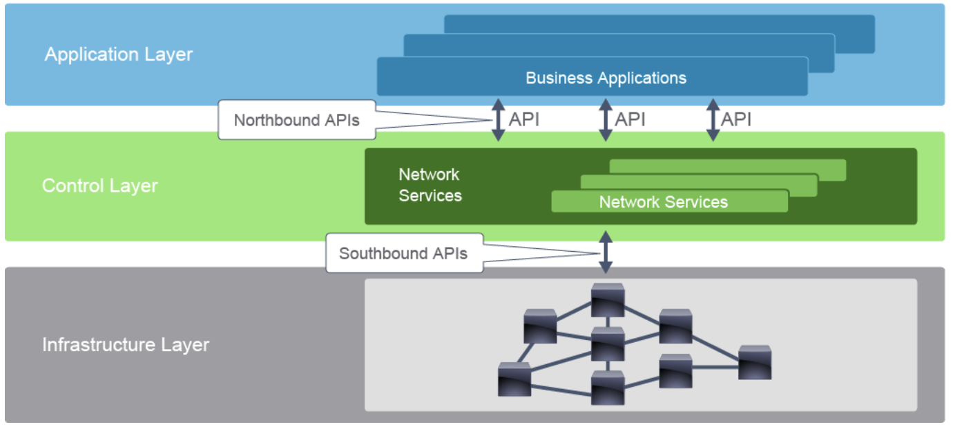 - Innerhalb der Application Layer sitzt die Business Anwendung die dann dem Control Layer sagt was für die Anwendung benötigt wird