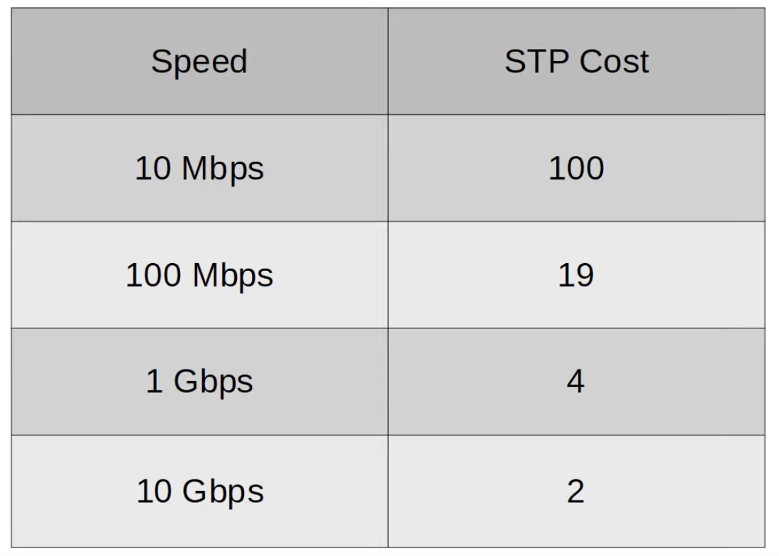 - Vergleiche Kosten (Speed) zur Root Bridge