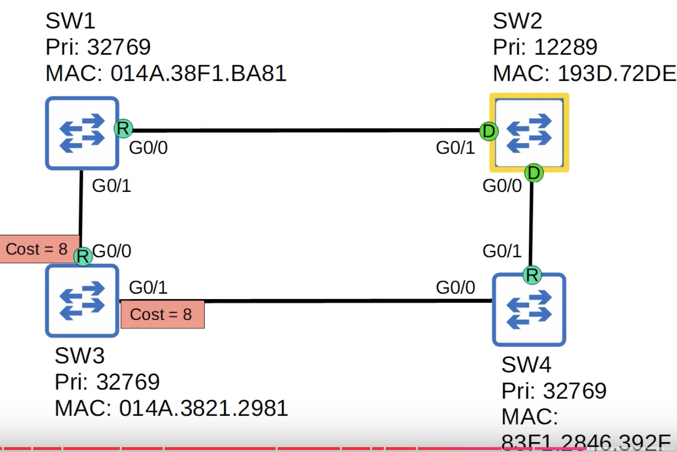 - Switch mit Lowest Bridge Priority oder lowest MAC stellt seinen Port in Designated (forwarding) State