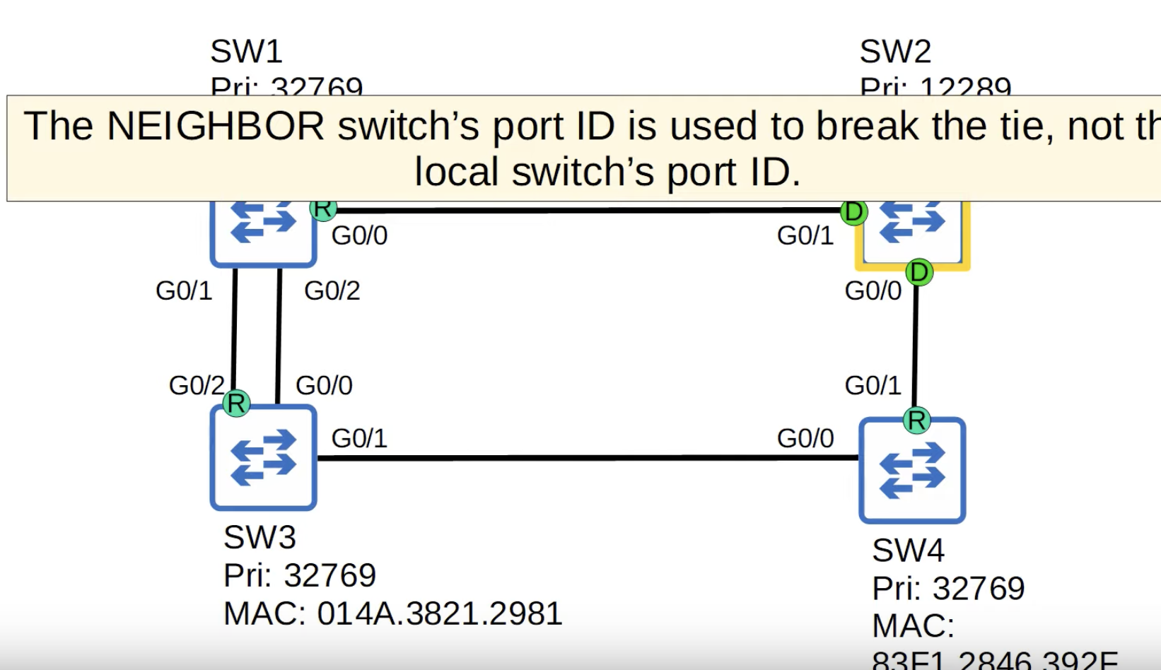 - Dann entscheidet die Neighbor Port ID (Port Priority (default=128)+Port No.)