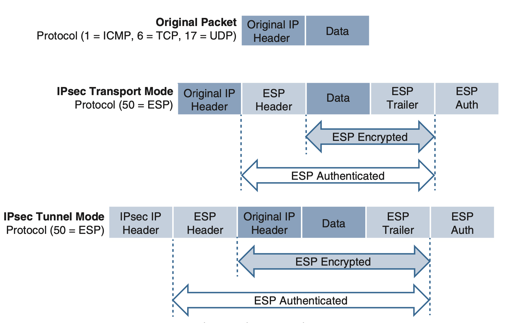Auch ESP kann in Transport oder Tunnel Modus eingesetzt werden. Die Funktion ist gleich wie beim AH.