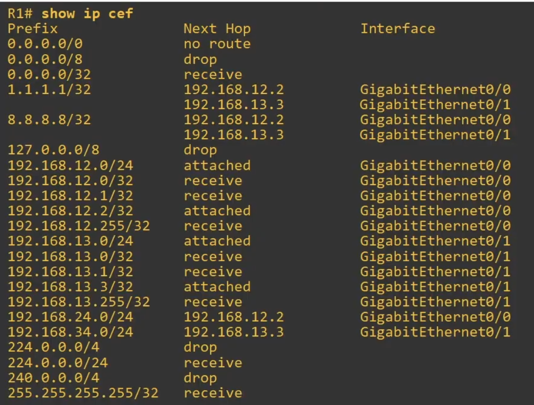 Die FIB kann man sich auf Routern mit dem Befehl show ip cef anzeigen lassen.